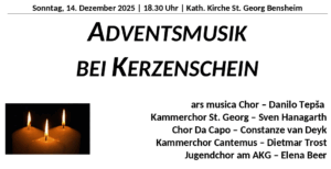 Bitte beachten Sie, dass es keine Abendkasse gibt, da die Veranstaltung ausverkauft ist. Eine Rücknahme von Karten ist nicht möglich. ——————————————————————————————– Sonntag, 3. Advent, 14.12.2025,
